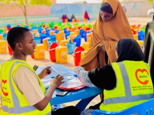 In December 2024, Mustaqbal Development and Relief Organization (MUDRO), with generous funding from the Somalia Humanitarian Fund (SHF), successfully distributed 2,200 hygiene kits to vulnerable families across seven IDP camps across Gomoro, Meyqonsatay, Tawado, Barwaqo, Bisigley, Bur Basle, Al Towba—and one host community village, Dameey, in Wajid District, Bakool Region. Each kit contained 5 bars of soap, 1 collapsible jerrycan (20 L), 1 plastic bucket (20 L), and 1 menstrual hygiene management (MHM) set.
